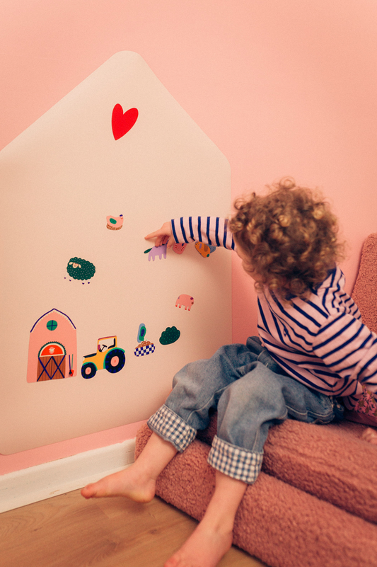 C’est un support ludique qui permet aux enfants de jouer, créer, déplacer et imaginer librement. Il stimule l’autonomie et l’imagination tout en décorant la pièce.
