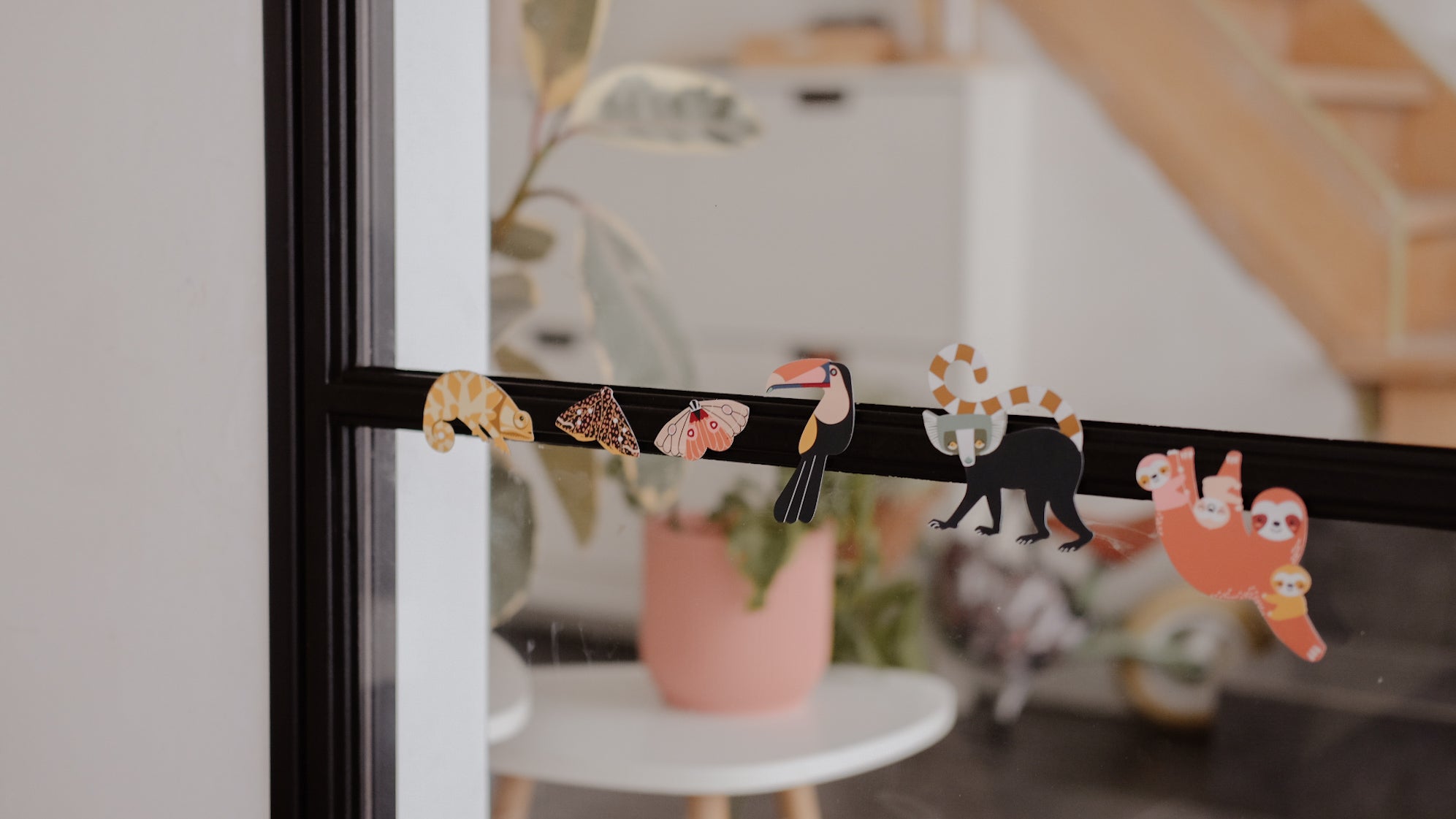 We use our radiators, the original magnetic board of Ma Cabane À Rêves, a magnetic poster and our bath.