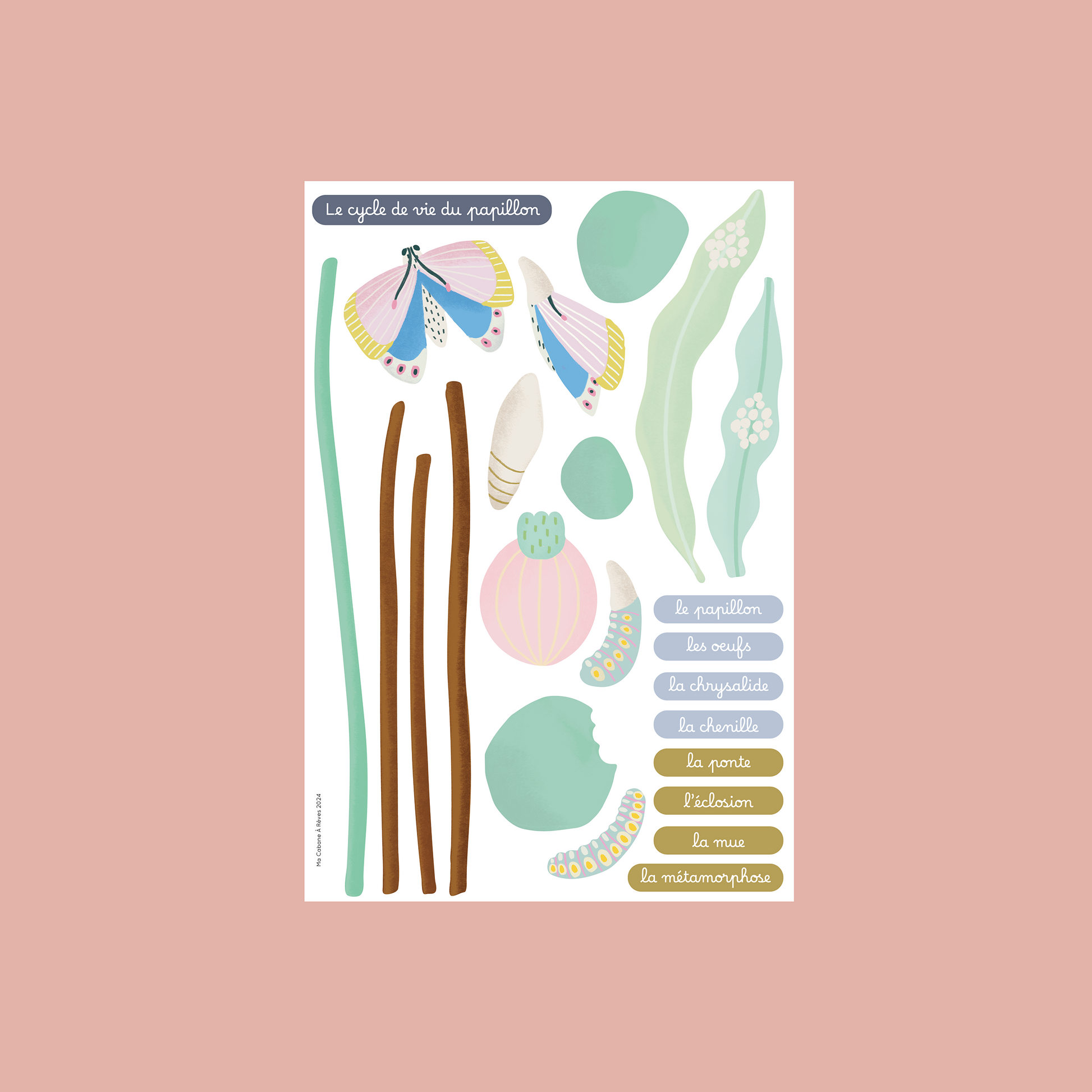 Explorez "Le Cycle du Papillon" ! Des magnets colorés et éducatifs pour suivre chaque étape de la métamorphose, de l'œuf au magnifique papillon.